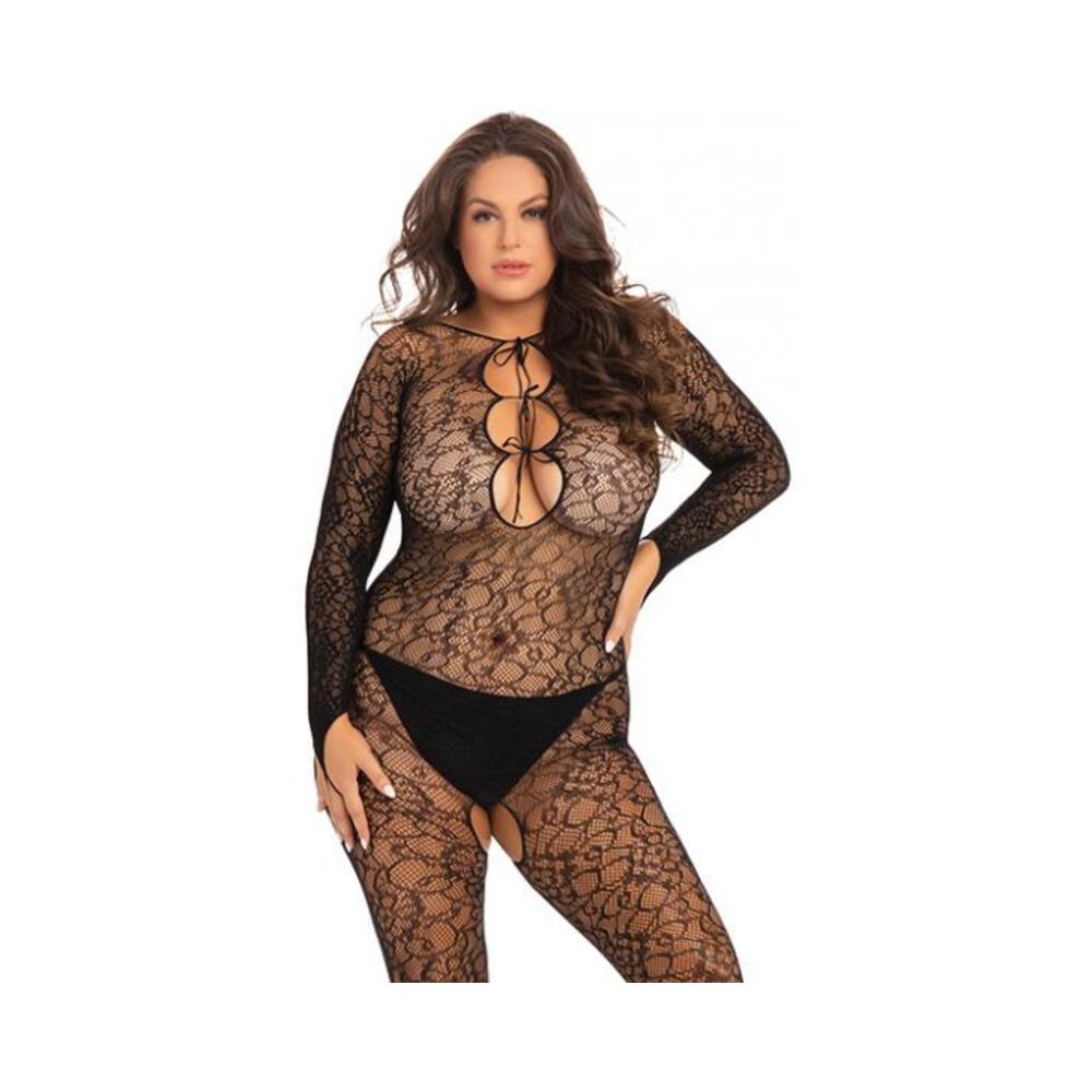 Rene Rofe Crotchless Lace Bodystocking Black 1x/2x